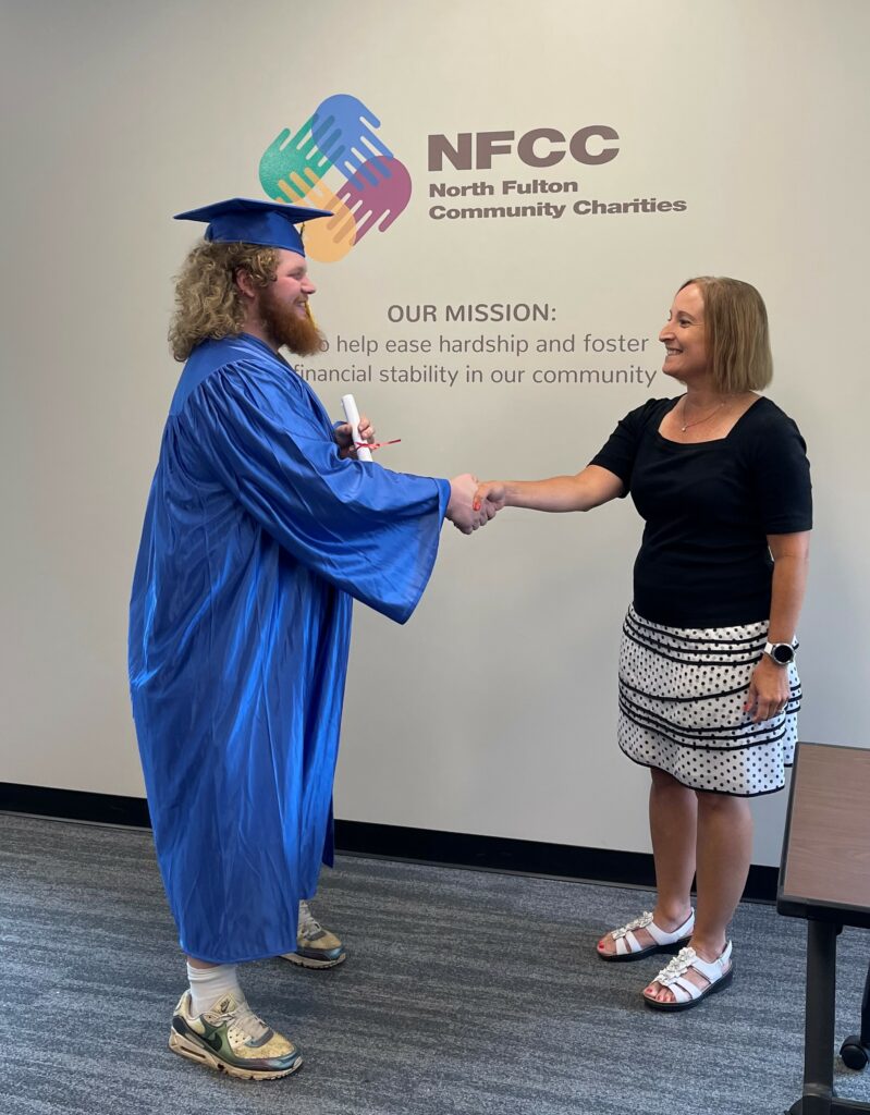 Curtis looked for GED Programs and found NFCC. He was already familiar with NFCC because he had visited the Thrift Store with his grandparents. We first met Curtis in January. He was matched with a tutor and began studying and practicing for the four exams. When he passed his first GED exam – Science, he was motivated to keep up the hard work. On May 20, 2023, just five months after starting the program, Curtis completed his last GED exam and earned his Georgia High School Diploma.